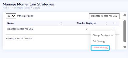 Deleting a momentum strategy permanently stops the stategy from trading. This means