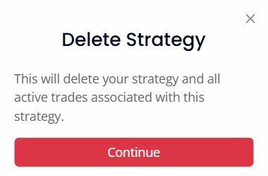 Deletion is irreversible — the strategy and its configuration will be removed from your account.