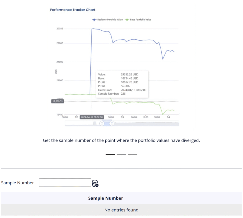If you deposit or withdraw funds, the tracker will detect this change as a divergence between Alpha and Beta. To realign the tracker, you can re-base it by entering the “sample” number corresponding to the point where the divergence began. This resets the baseline, allowing Alpha and Beta to track each other accurately again.