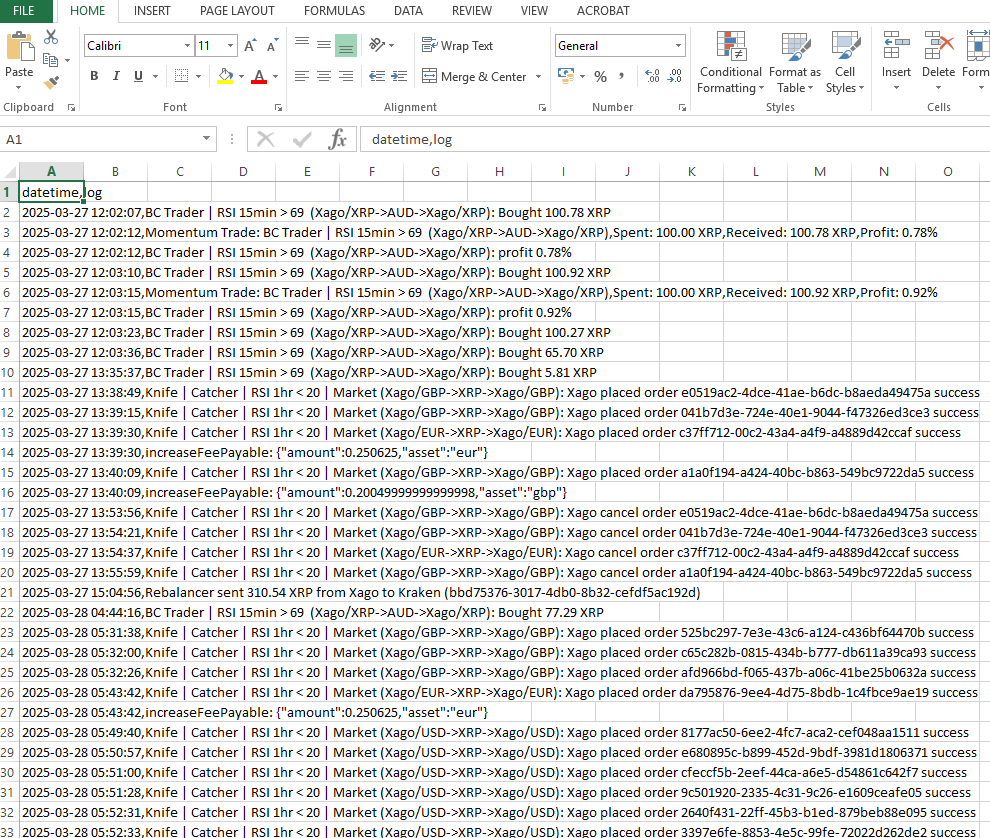 See an example of a detailed log below. - Clicking the Debug Logs button will email you a list of error logs, allowing you to review and troubleshoot any issues with your trades.